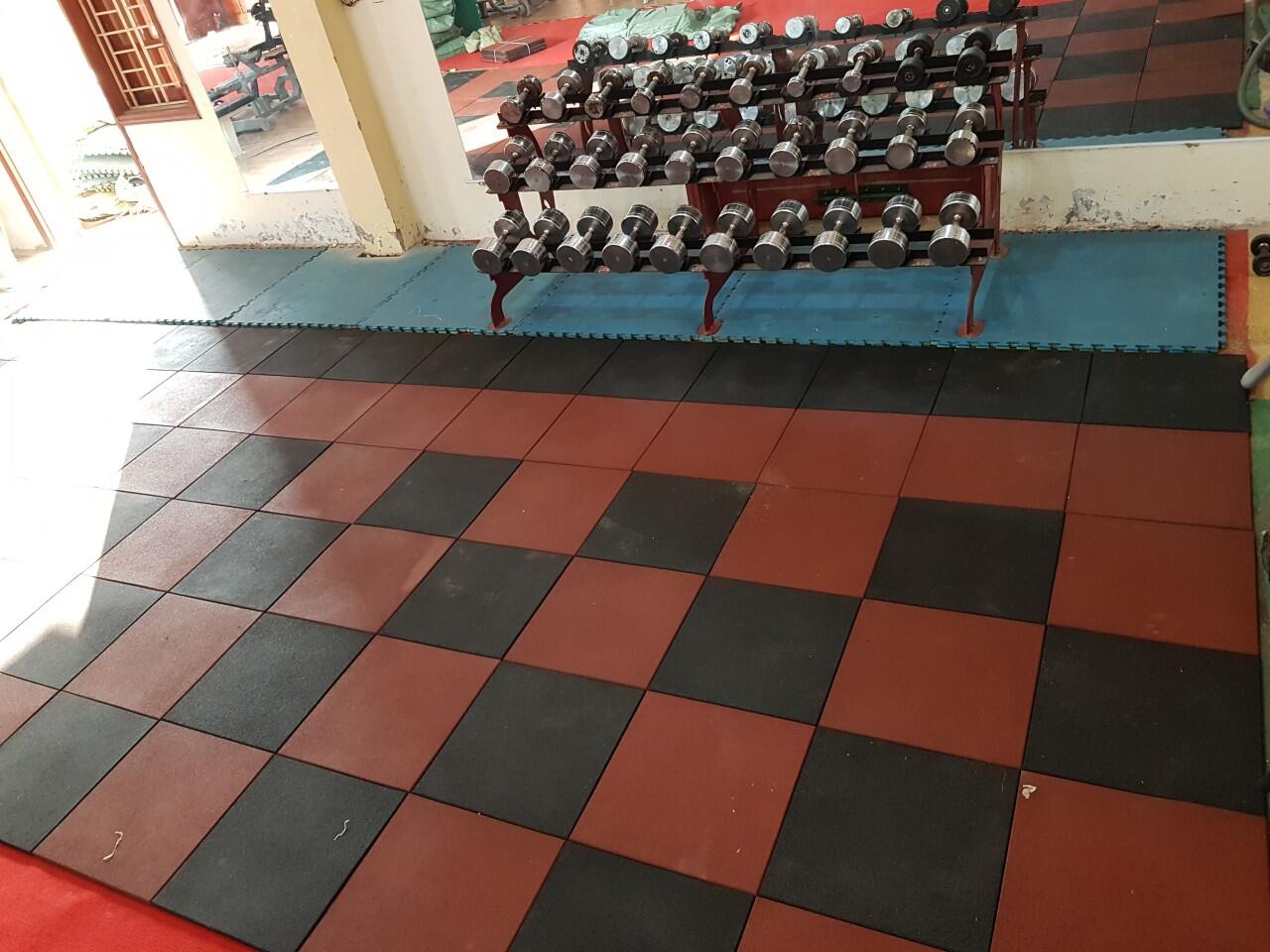 Gạch cao su 15mm-20mm: sử dụng cho khu vực thông thường (kê máy tập) thì chỉ cần sử dụng loại có độ dày 15mm-20mm là ổn