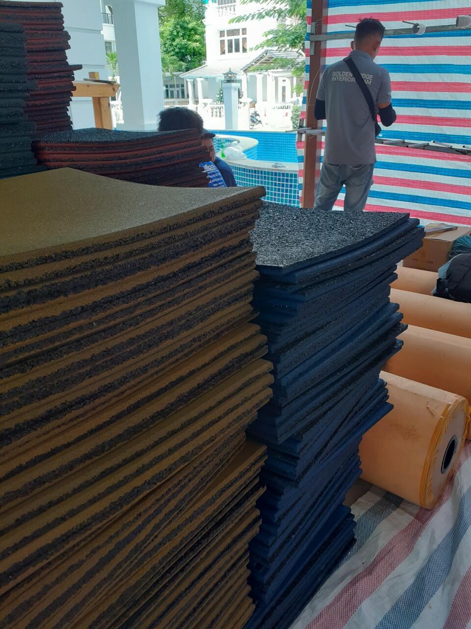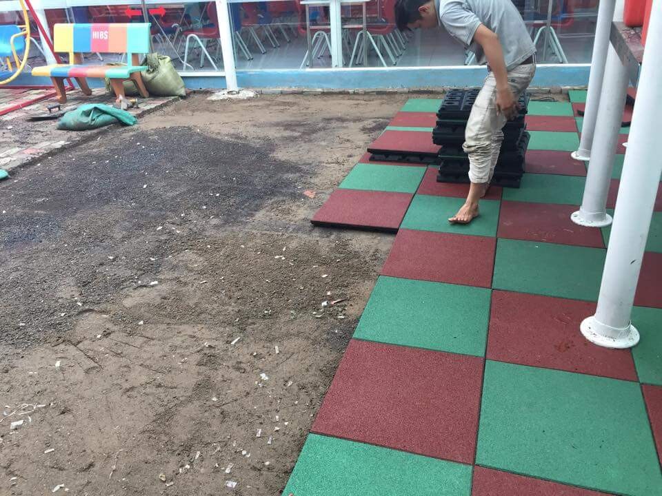 Hình ảnh lắp đặt gạch cao su vô cùng đơn giản