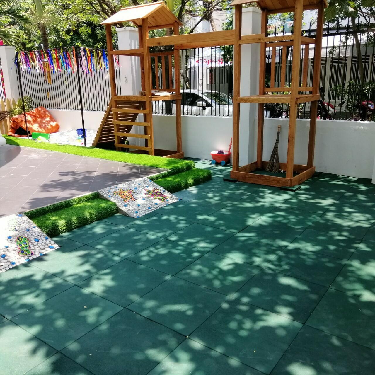 So với bề mặt từ các vật liệu truyền thống, sử dụng gạch cao su trong việc thiết kế sân chơi trẻ em thực sự đã trở thành một bước cách mạng trong việc sử dụng các bề mặt an toàn.